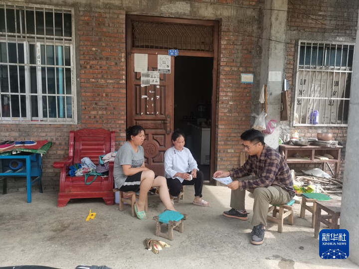 简嘎乡岜怀村党支部书记罗周元(右一)到村民家中普及防溺水知识。(受访者供图)