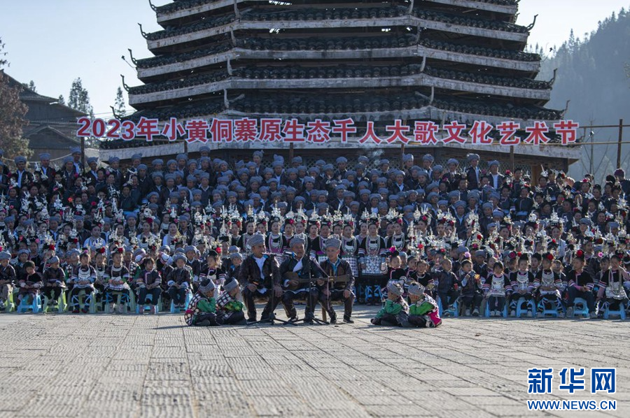 从江县小黄侗寨原生态千人大歌文化艺术节。新华网发(黔东南州委宣传部供图)