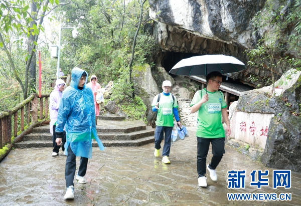 活动参与者经过鹿冲关森林公园地母洞。(主办方供图)